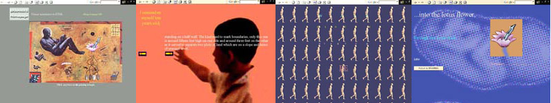 As the viewer glides the mouse pointer on the digital replica of the painting, ‘hot’ links show up. These links when clicked open into a series of screens and a gradually unfolding narrative. | The intention behind this installation is to turn ‘'website’ into a metaphor, or mythycal motif. A metaphor that encodes the experience of a hyperlinked, and non-linear world that we have inherited as a result of sweeping technological changes. |