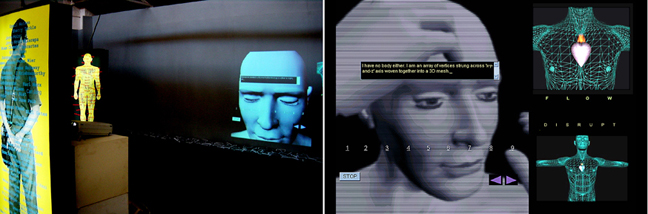 'Cyberpunk' literature invariably deals with a future world where we humans are at the mercy of the technology we have created. This Installation attempts to probe the cyberpunk notion of selfhood expressed as a digital (cyber) construct, an 'avatar' existing and tran-scending the limitations imposed by the material, temporal, and socially defined reality space. In the installation the inner cyborg it is presented as an unrestrained expression of agency, homological to the eastern notion of the true self standing apart from the ‘temporal physical world self’. Consequently, the existential and ethical issues related to being displaced by a surrogate virtual body-self is addressed in this work. |